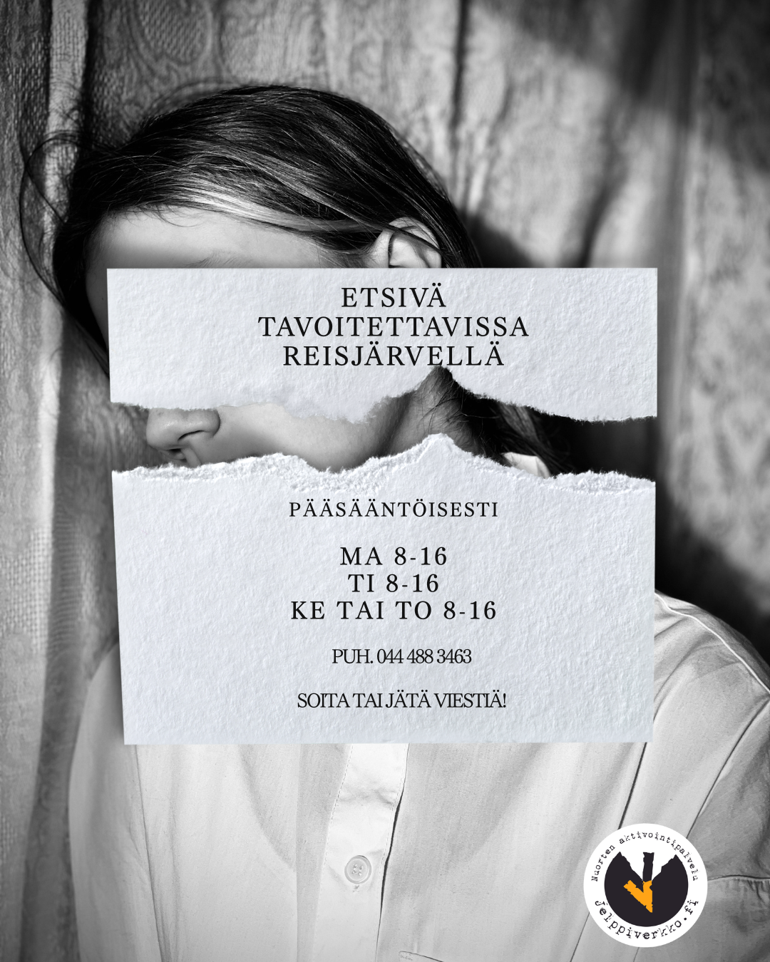 Reisjärvellä etsivä nuorisotyöntekijä tekee 50% työaikaa. Etsivä on tavoiettavissa 2-3 päivänä viikossa. Mikäli et tavoita etsivää, voit jättää yhteydenottopyynnön. Sinuun ollaan yhteydessä myöhemmin työajan puitteissa.