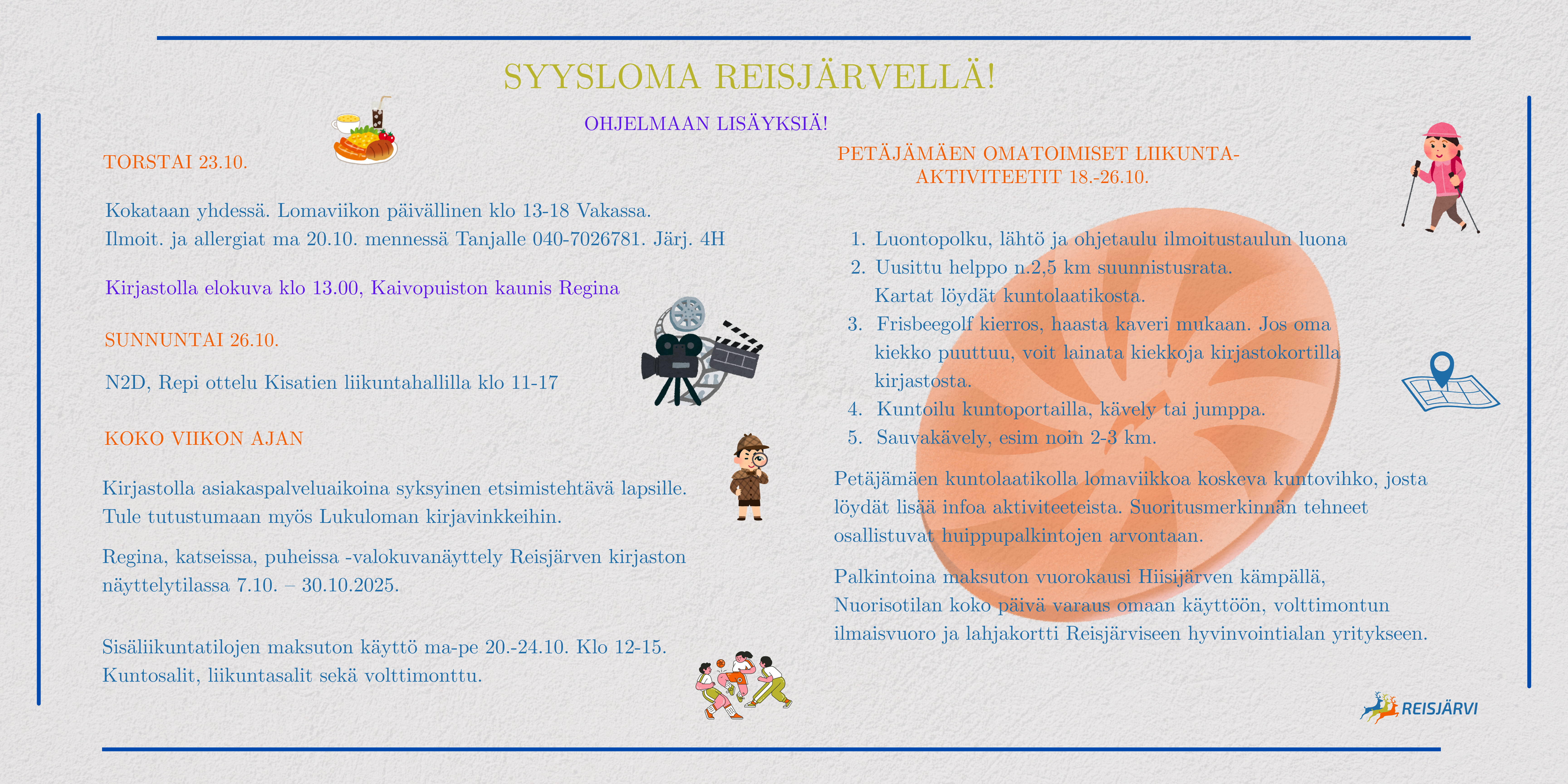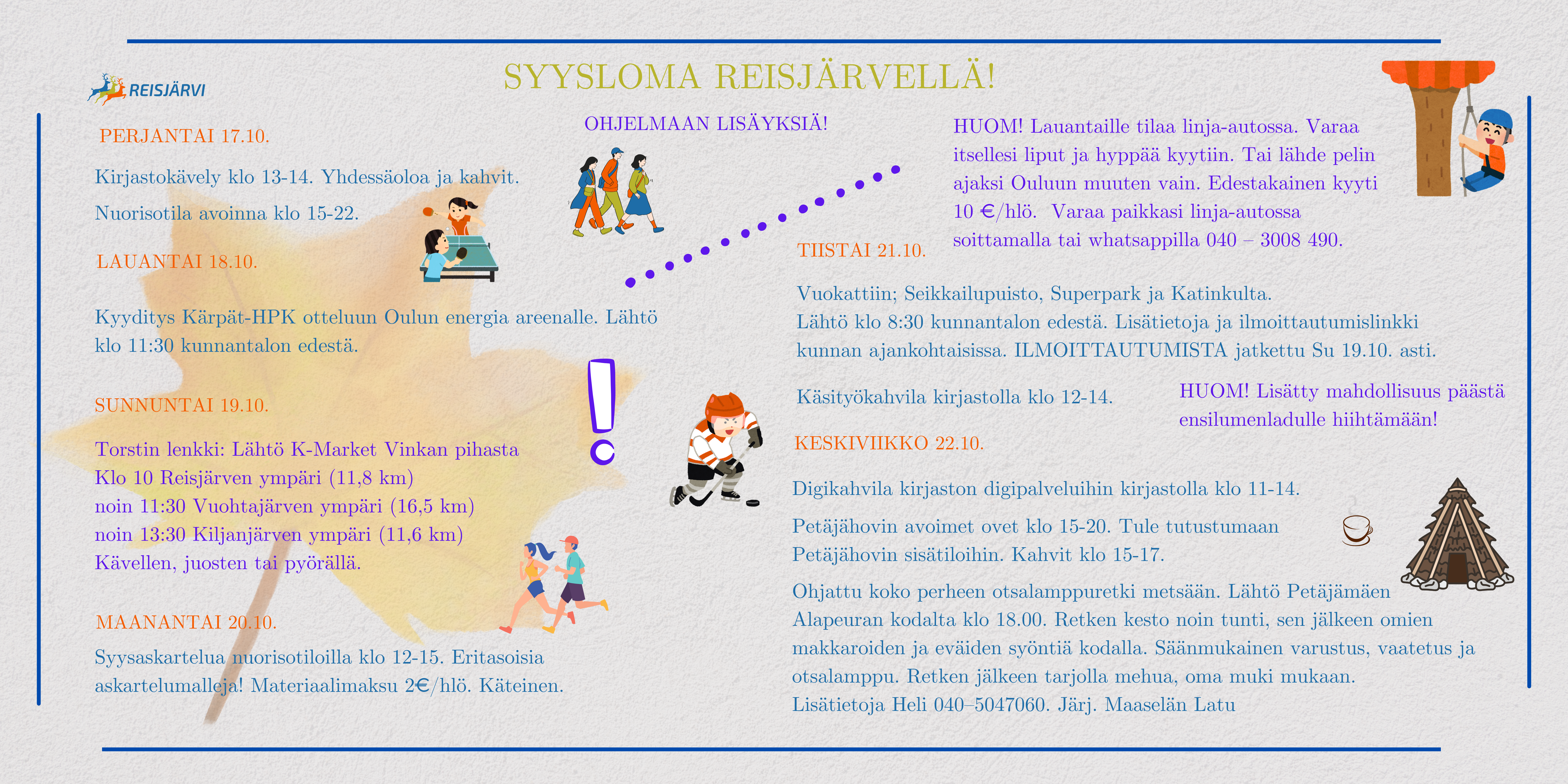 Syyslomaviikon päivitetty kooste, Tervetuloa mukaan tapahtumiin! Tagit Syysloma Lue lisää Syyslomaviikon päivitetty kooste, Tervetuloa mukaan tapahtumiin!